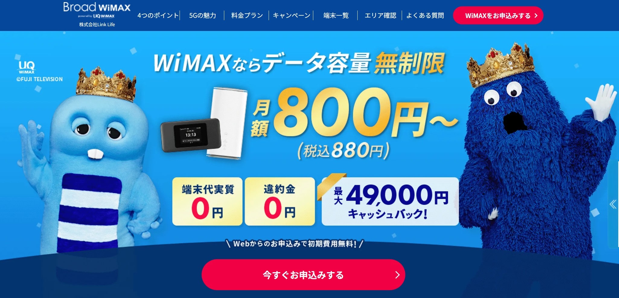 BroadWiMAXは当サイト限定キャッシュバック&月額料金も安い!